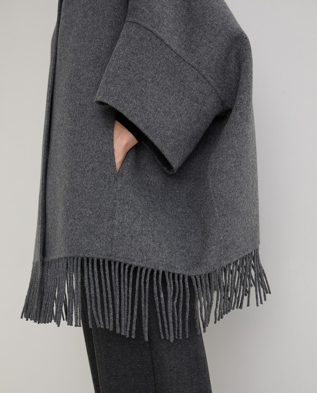 Capa con flecos hecha a mano en mezcla de lana - DISPONIBLE EN NEGRO