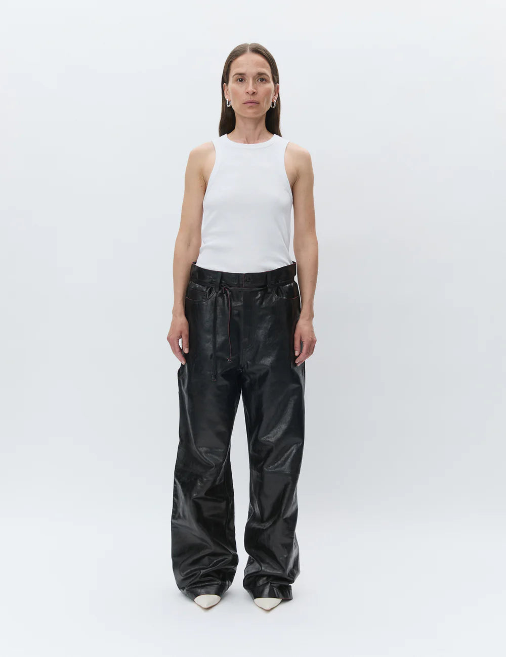 Top clásico de canalé Alisson blanco brillante