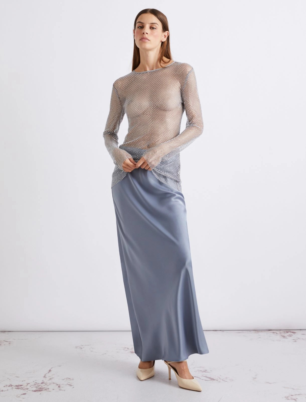 This new rhinestone mesh T-shirt is set apart by its sensuality and up-to-date allure. A mass of sparkle to be worn straight over your lingerie.