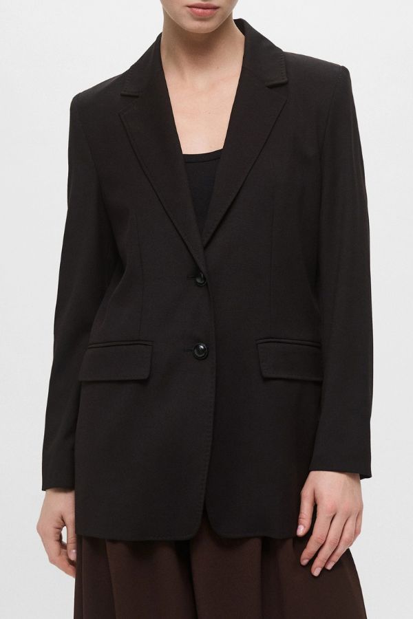 With its clean cut and tailored design, this day-suitable jacket can be worn time and time again. Wear with trousers and a silk blouse for the office, or a lingerie-look top and jeans when seeing friends. Stretch viscose-blend flannel jacket Straight fit Lapel collar Single-breasted fastening Front darts and flap-adorned welt pockets Lined garment Fabric 67% polyester, 31% viscose, 2% elastane; lining 97% polyester, 3% elastane