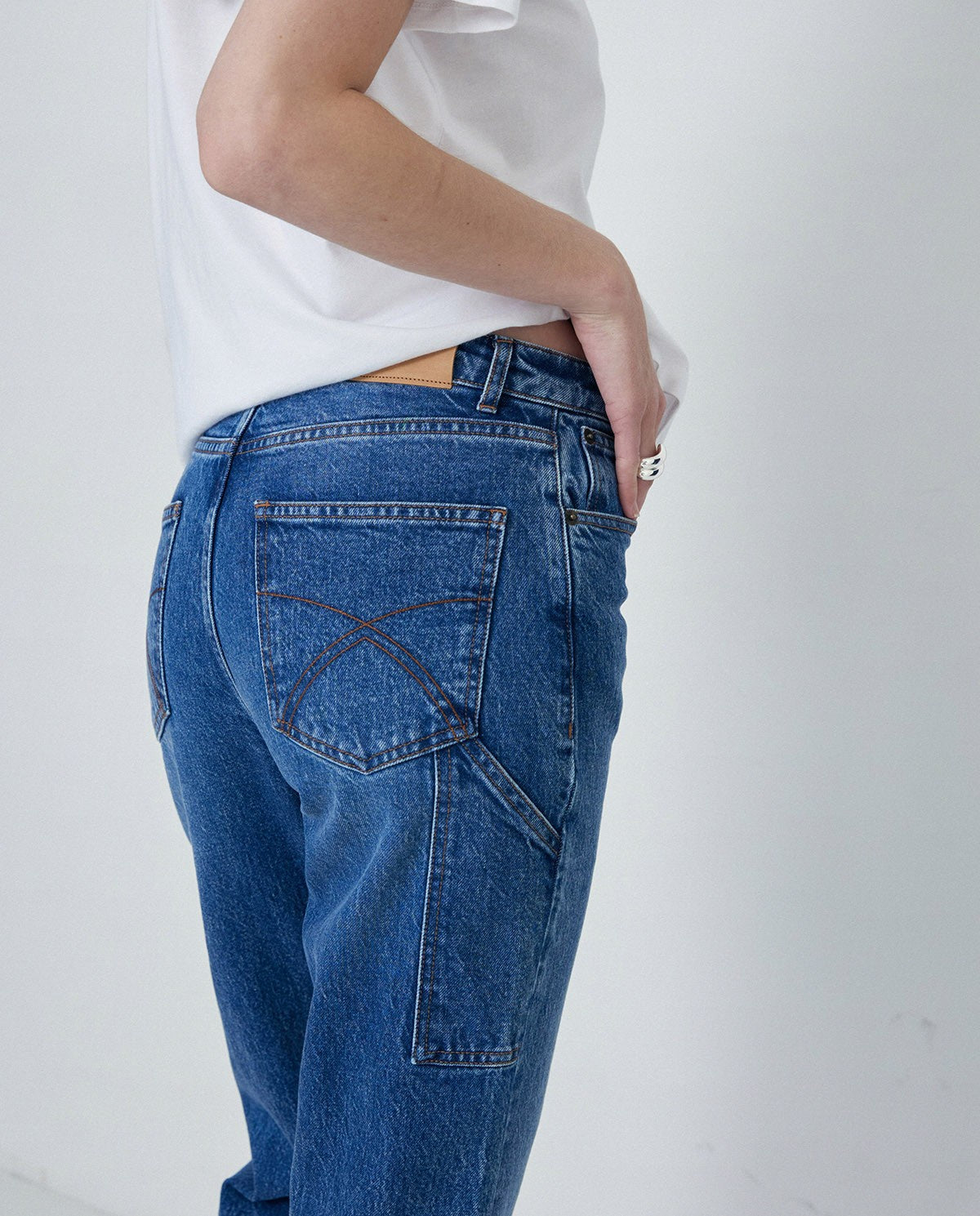 Pantalón vaquero de algodón orgánico. Corte recto. Trabillas para cinturón. Cierre con cremallera y botón. Bolsillos laterales y traseros. Composición: 98% algodón orgánico, 2% elastano.