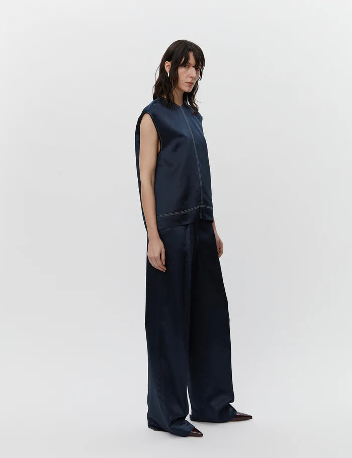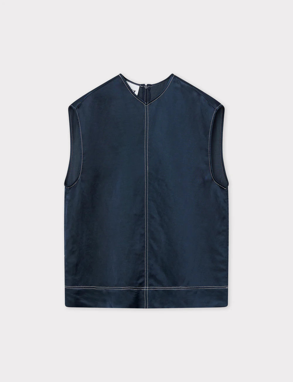 Esta blusa sin mangas de corte cuadrado tiene un cierre de cremallera en la espalda y costuras en contraste en toda la parte superior. Tiene un corte regular.
