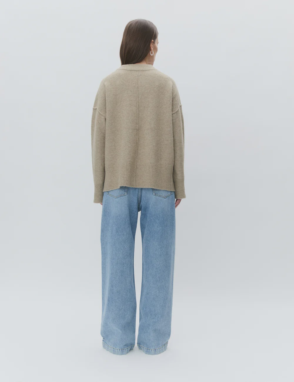 This stretchy knit jumper features a rounded neck, slits at the sides, and a slightly dipped hem. The jumper has an oversized fit.